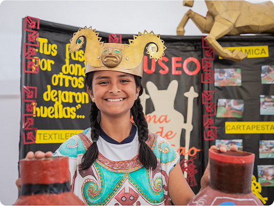 La Feria Escuela e Identidad es una iniciativa de la Fundación Wiese que busca fortalecer el vínculo entre la educación y la cultura en la provincia de Ascope, La Libertad, Perú. Realizada en el complejo arqueológico El Brujo, esta feria reúne a estudiantes, docentes, artesanos, sabios y miembros de la comunidad. En este espacio, los estudiantes presentan los resultados de sus proyectos de aprendizaje, mediante los cuales exploran su entorno, identifican oportunidades y asumen un rol activo. Así, promueven la identidad cultural, el sentido de pertenencia y la valoración del patrimonio local. La feria se convierte, de este modo, en un escenario para exhibir y celebrar estos aprendizajes y el compromiso con la comunidad.